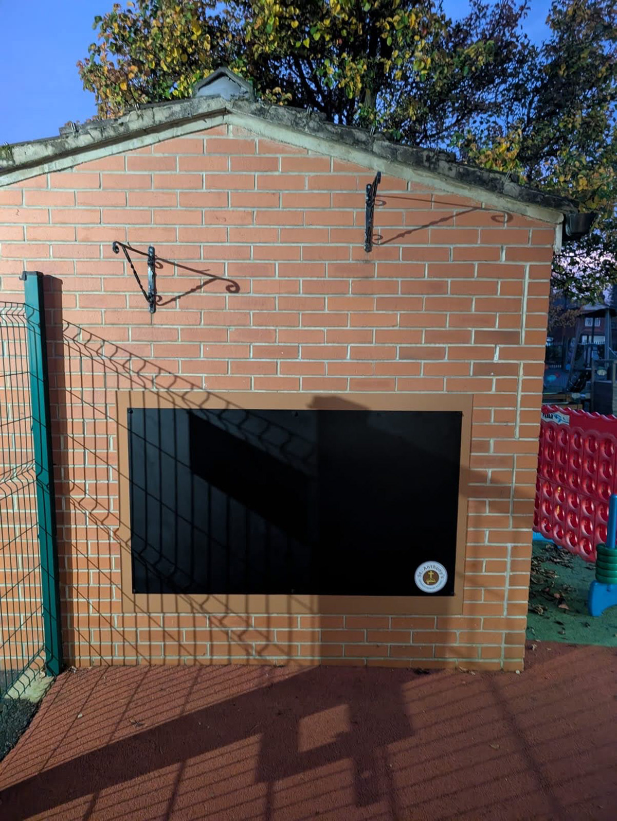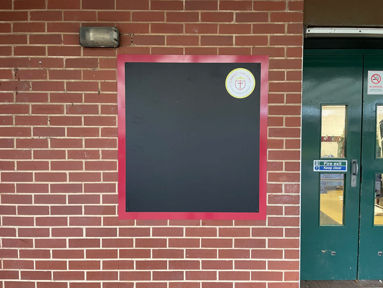 Blackboards outside (ie that you can write on with chalk and wipe) are available to order. These chalk boards can also be customised with displays if needed.