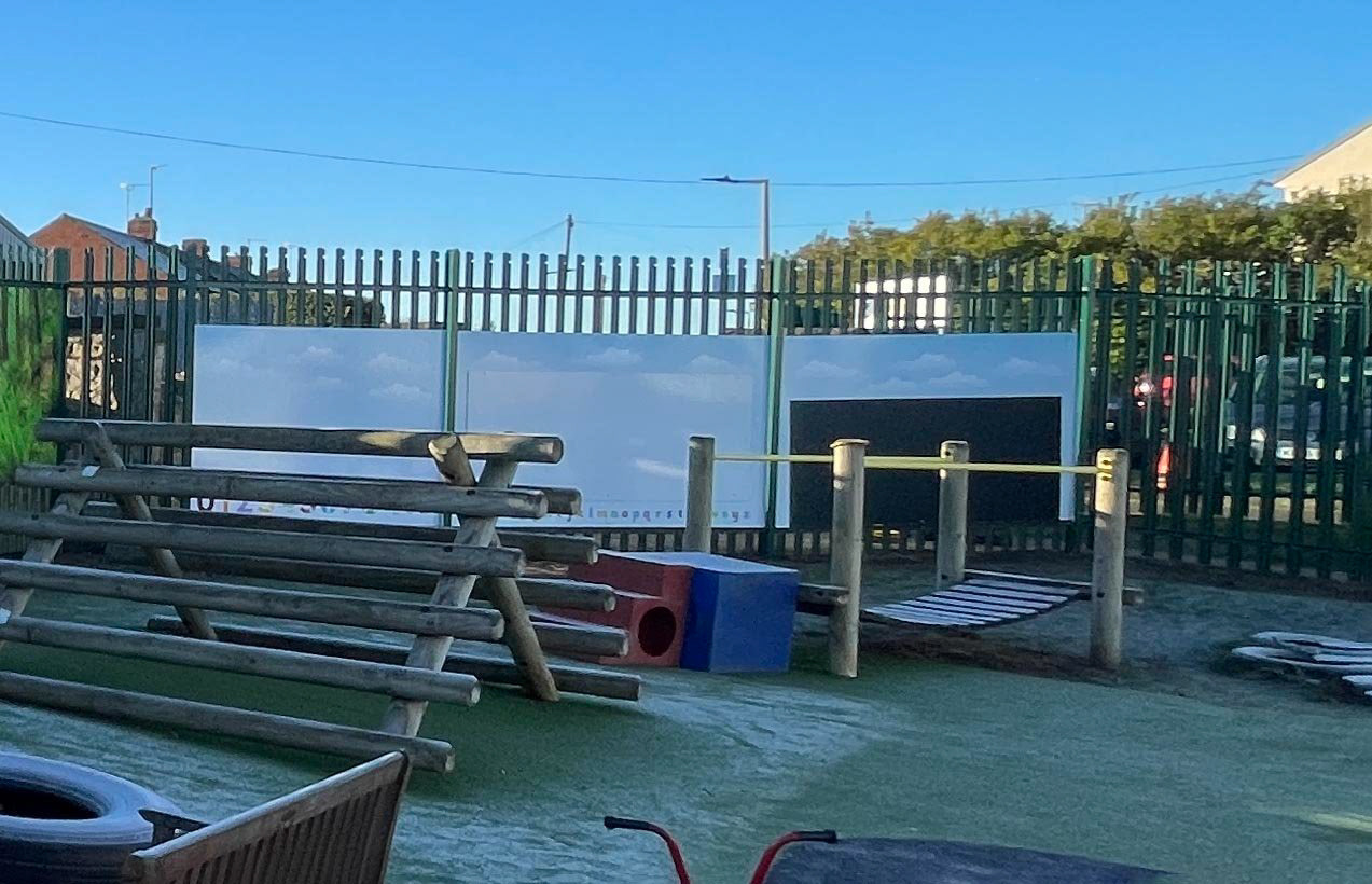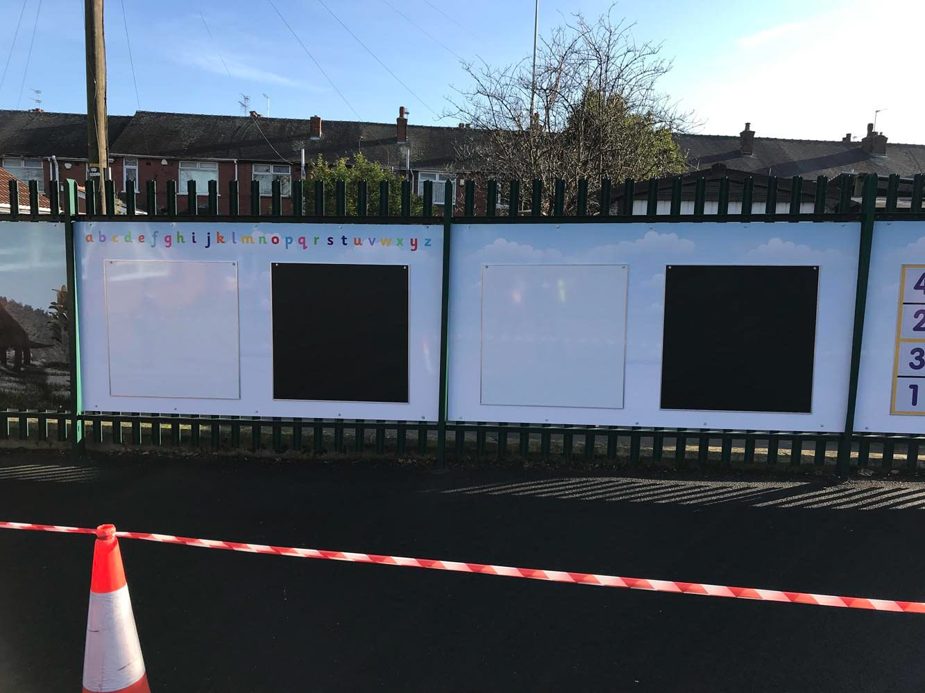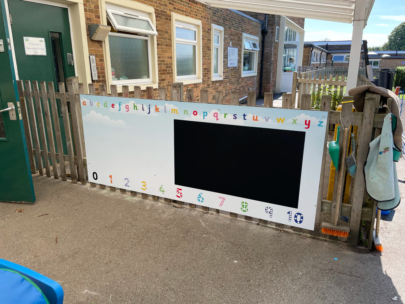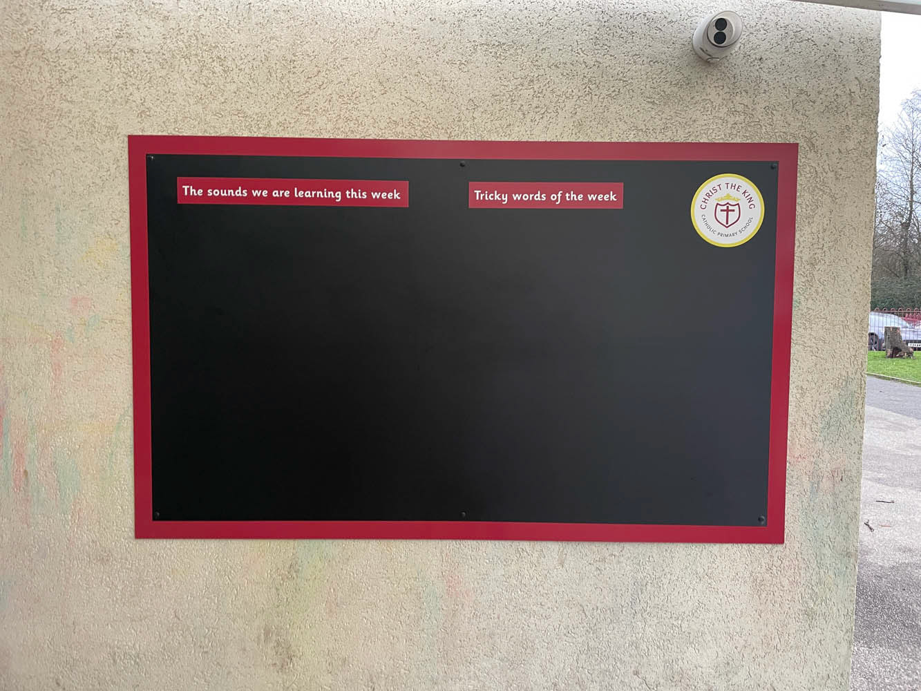The size can be to the nearest mm you need. It is now possible to add borders in the school colour, the school logo or even text to the blackboard design.