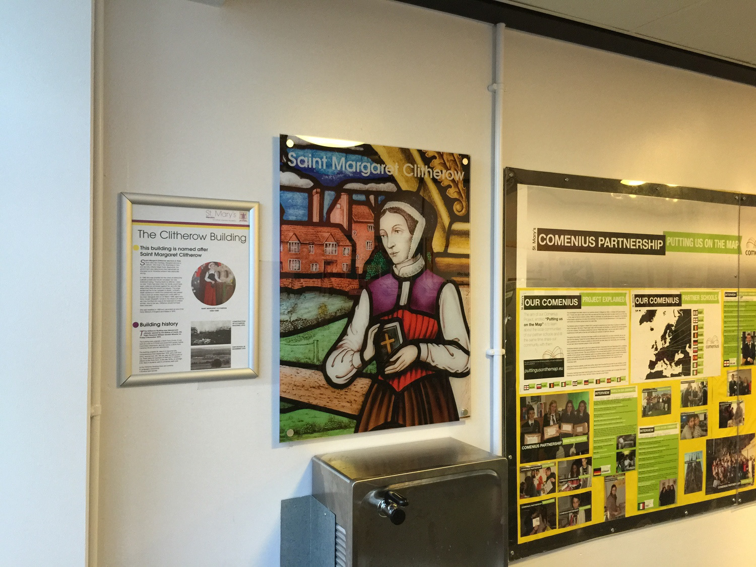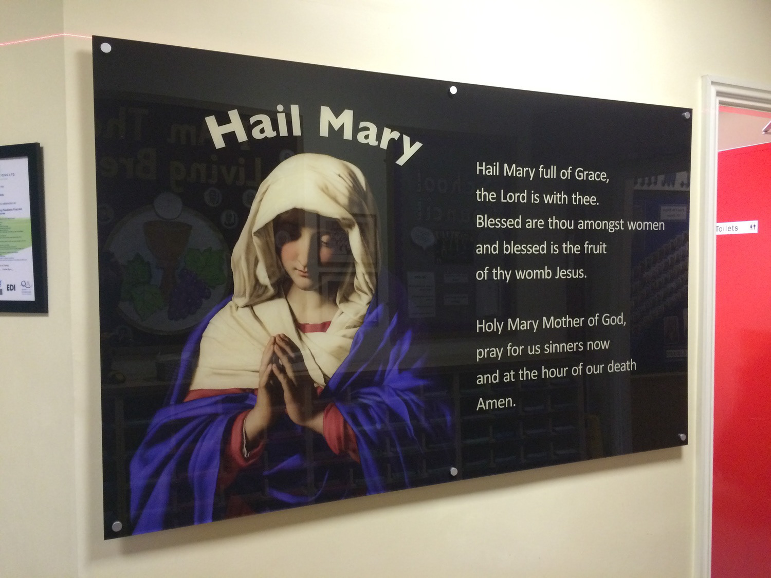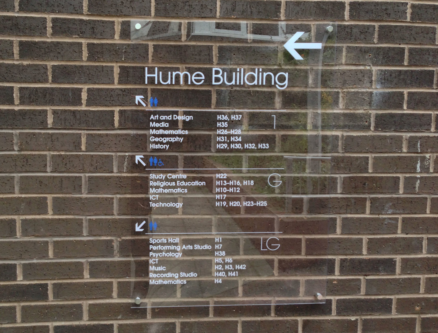 Acrylic can be used inside and outside. I have used it for wayfinding signage and plaques, where it looks sleek and contemporary. It can also be used as a beautiful way of displaying images - giving a pleasing 'shiny' effect with deep blacks and impressive contrast. It can be either a clear background or full colour. It can be cut into shapes. It can be either ‘studded’ off the wall or fixed flat to the wall. It is possible to add document holders (of different sizes) to acrylic boards.
