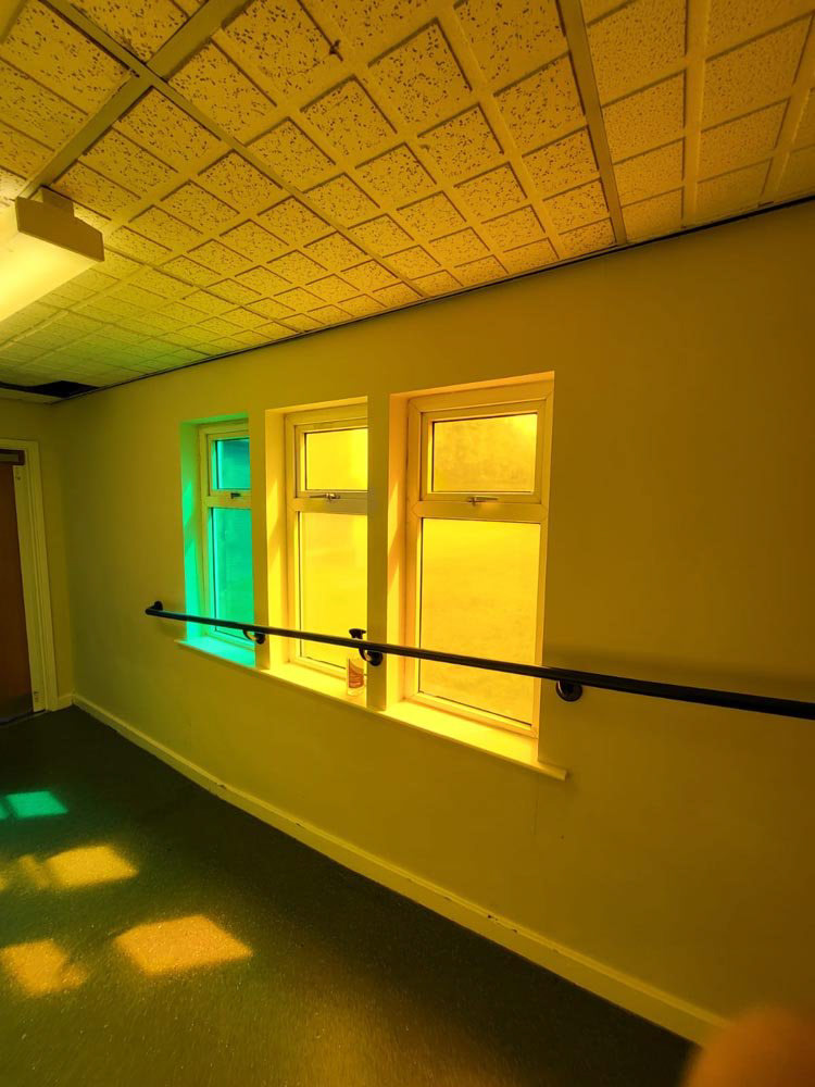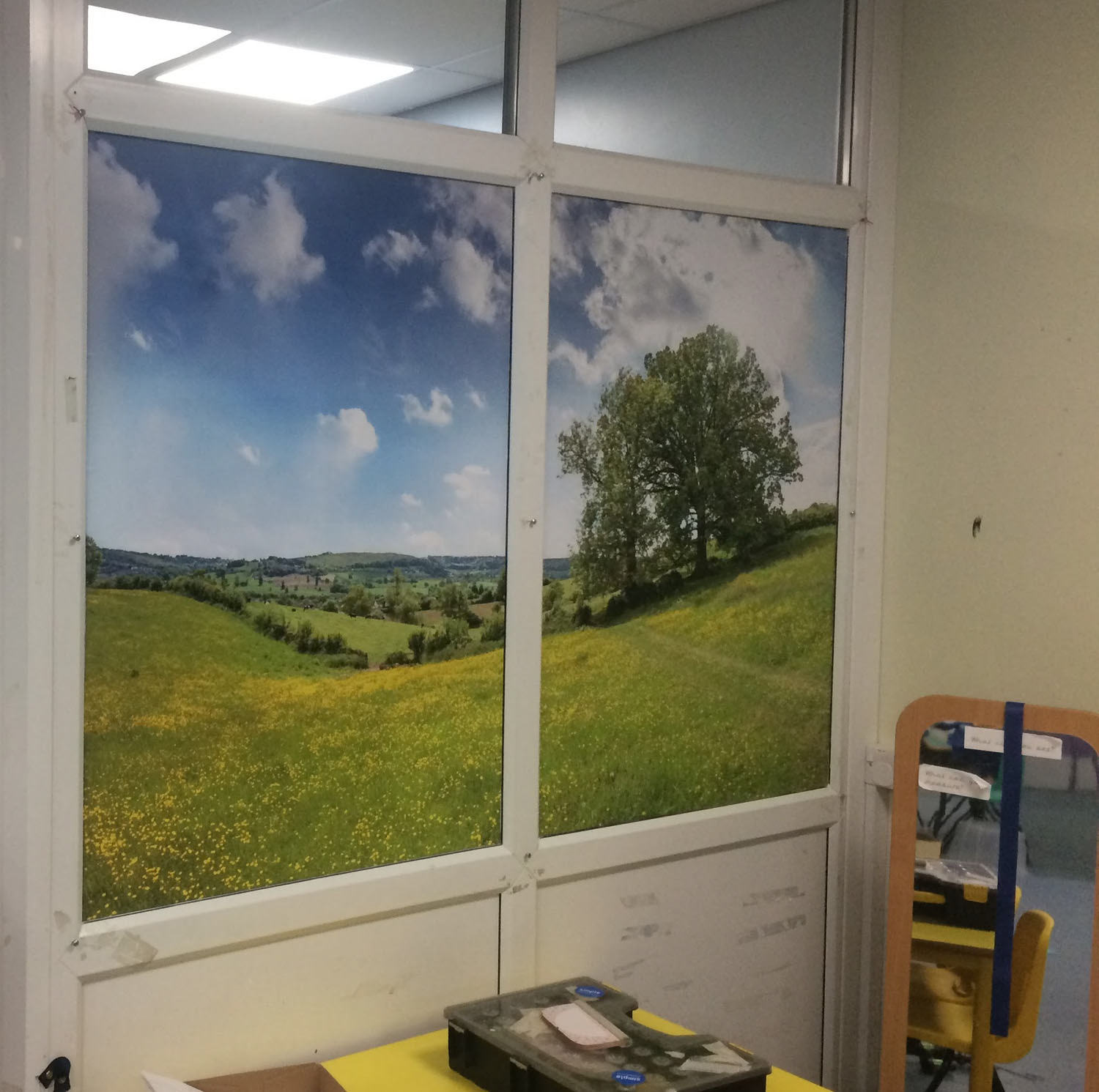 Sticker material can be used both inside and outside. They can be used for lettering to covering large surfaces. They can be stuck on walls or on glass surfaces. They can be completely opaque or they can let light through if desired. The sticker material can be cut into very intricate shapes such as letters or musical notes. Sticker coverings on outside windows are particularly good branding, yet relatively inexpensive.