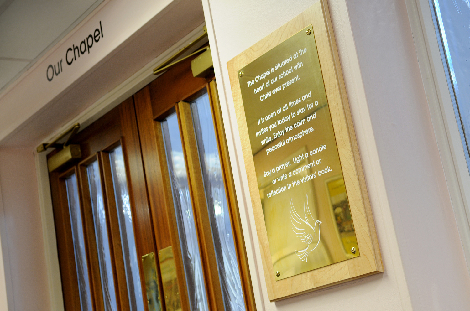 Brass or steel plaques are striking, long lasting and respectful. They can be used both inside and outside.
